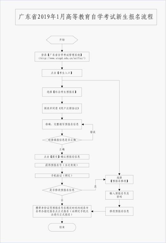 1.预报名。新生自行登录广东省自学考试管理系统(网址:www.stegd.edu.cn/selfec/,下同)进行预报名。根据《关于广东省高等教育自学考试专业调整有关事项的通知》(粤考委〔2018〕1号)规定,此次新生报名只能选择调整后的专业名称。预报名时考生须录入个人信息并设置个人密码,预报名成功后将得到,的预报名号,预报名号仅当次有效。考生预报名成功后还须完成本人手机绑定方能进行正式报名。