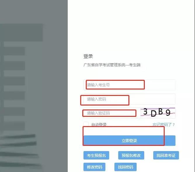 1、登录深圳自学考试管理系统,点击【点击进入】按钮进入考生登录页面。
