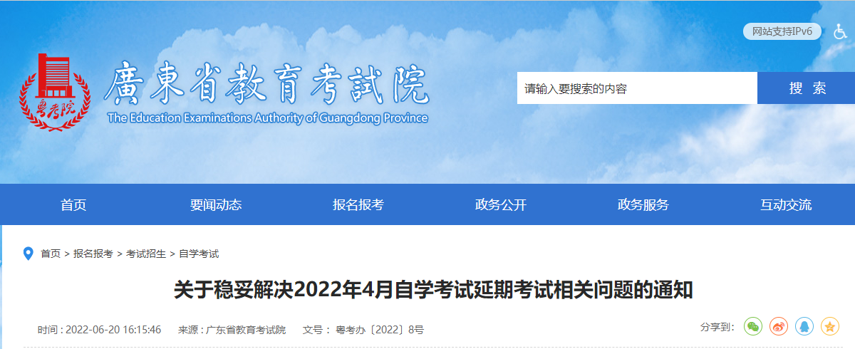 2022年4月广东自考延期考试相关问题妥善解决的通知