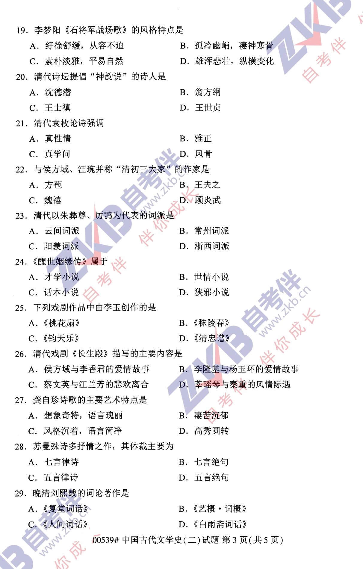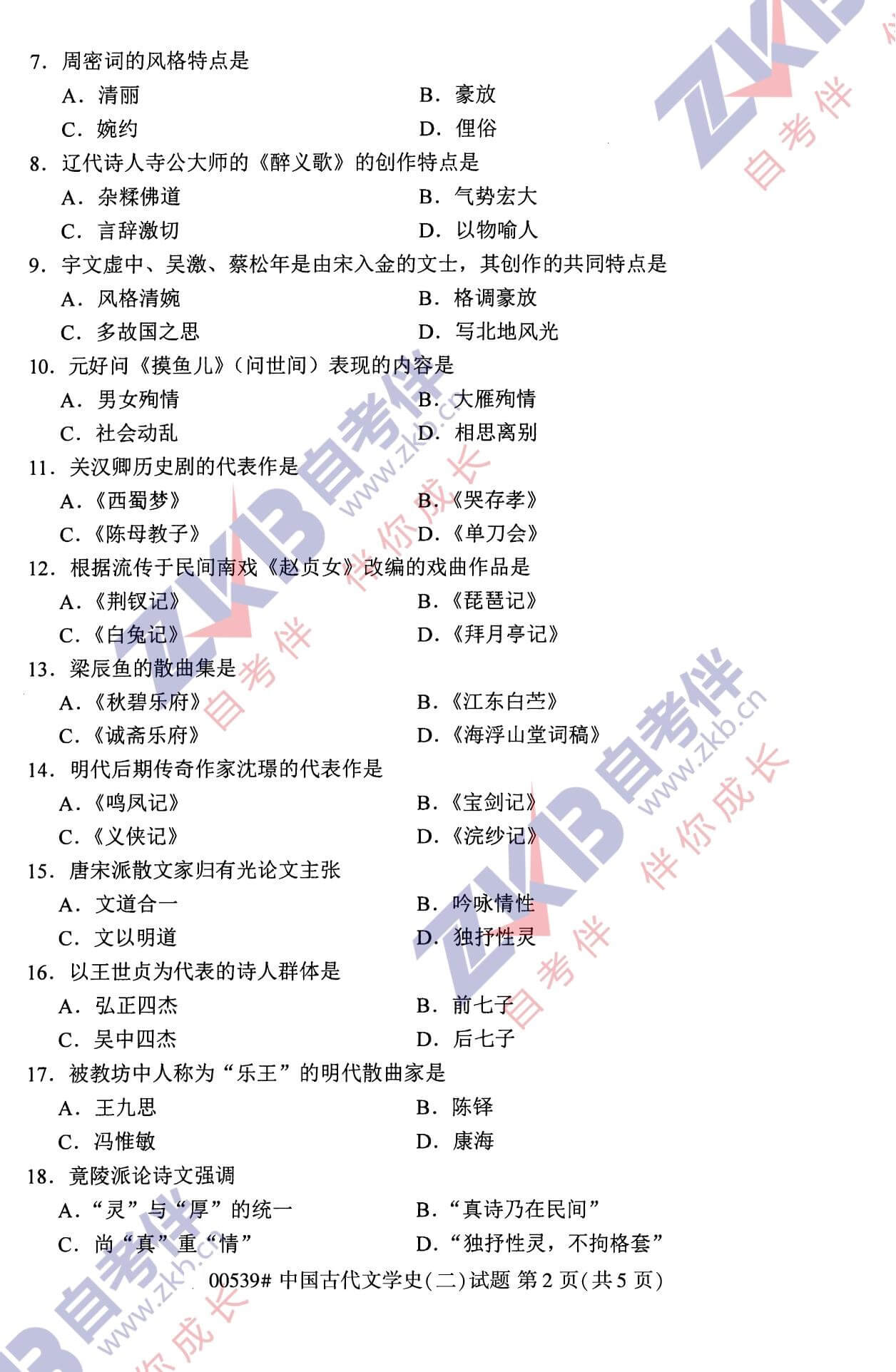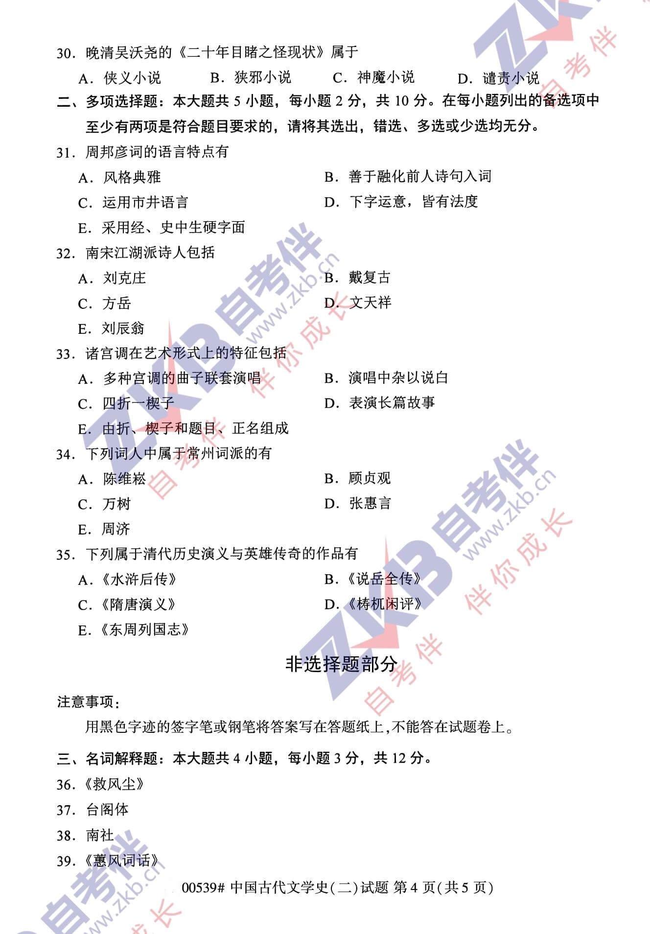 我们为考生提供广东自考的相关真题,以下为2021年10月广东自考00539中国古代文学史(二)真题试卷,更多真题考生可点击广东自考历年真题栏目进行查询。