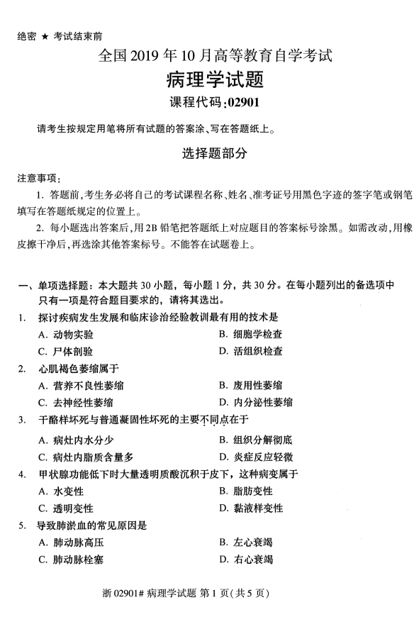 所在位置:广东省自考网 > 试题题库 > 自考试卷 > 全国2019年10月自考02901病理学试题