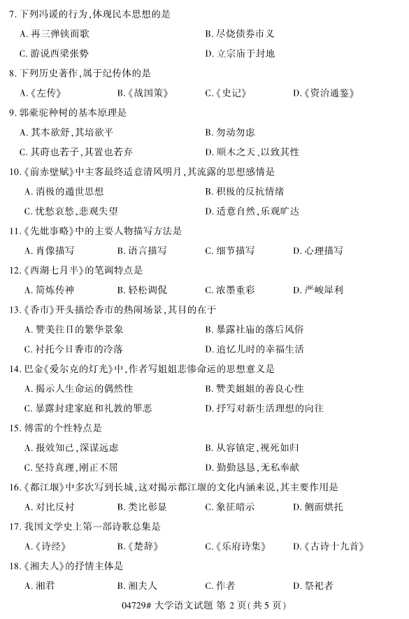 所在位置:广东省自考网 > 试题题库 > 自考试卷 > 2019年10月自考04729大学语文试题