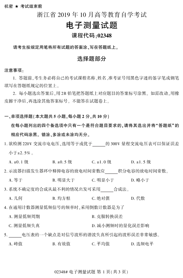 所在位置:广东省自考网 > 试题题库 > 自考试卷 > 2019年10月自考02348电子测量试题