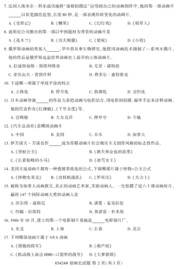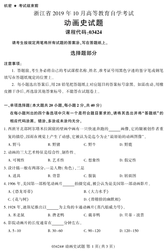 所在位置:广东省自考网 > 试题题库 > 自考试卷 > 2019年10月自考03424动画史试题