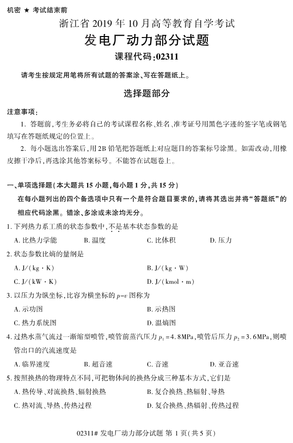 所在位置:广东省自考网 > 试题题库 > 自考试卷 > 2019年10月自考02311发电厂动力部分试题