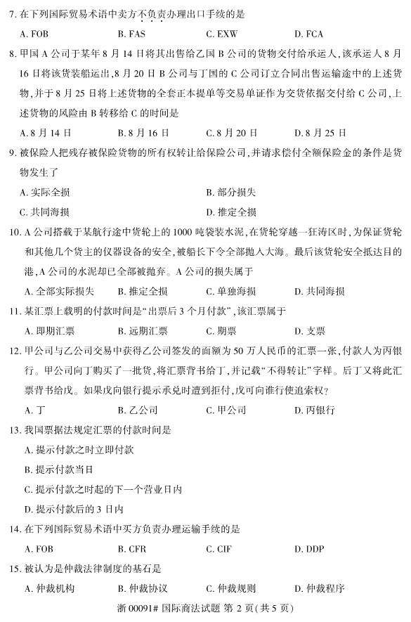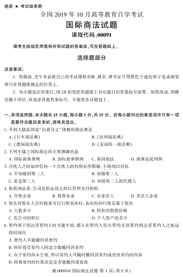 所在位置:广东省自考网 > 试题题库 > 自考试卷 > 全国2019年10月自考00091国际商法试题