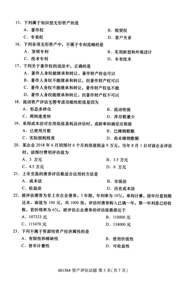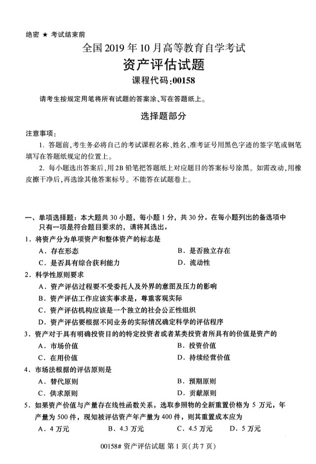 所在位置:广东省自考网 > 试题题库 > 自考试卷 > 全国2019年10月自考00158资产评估试题