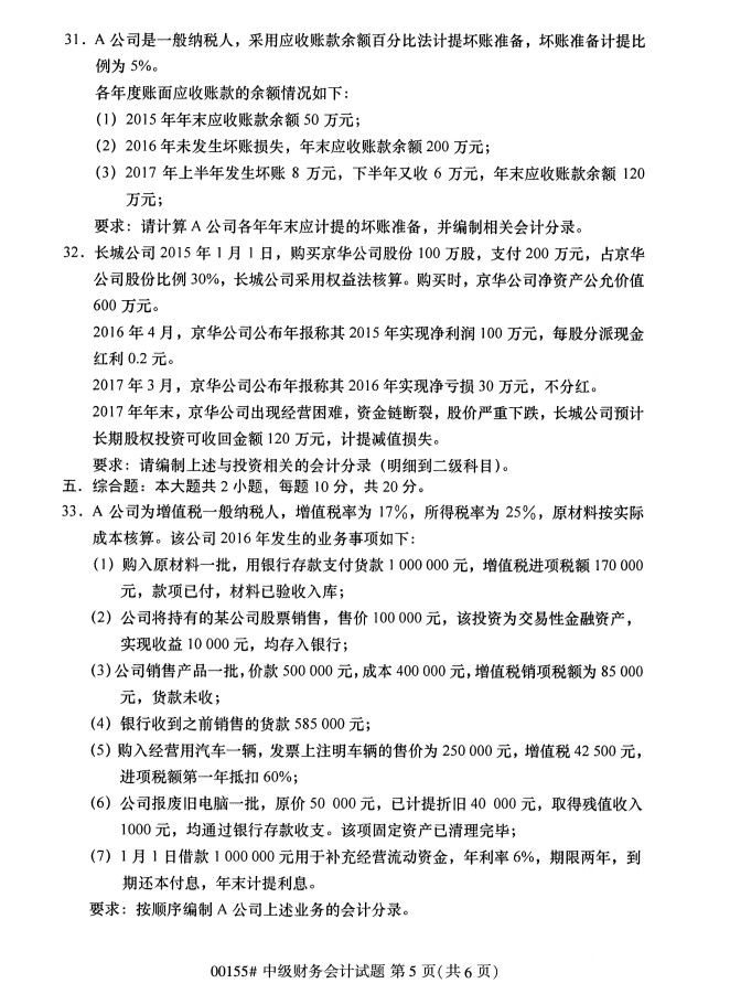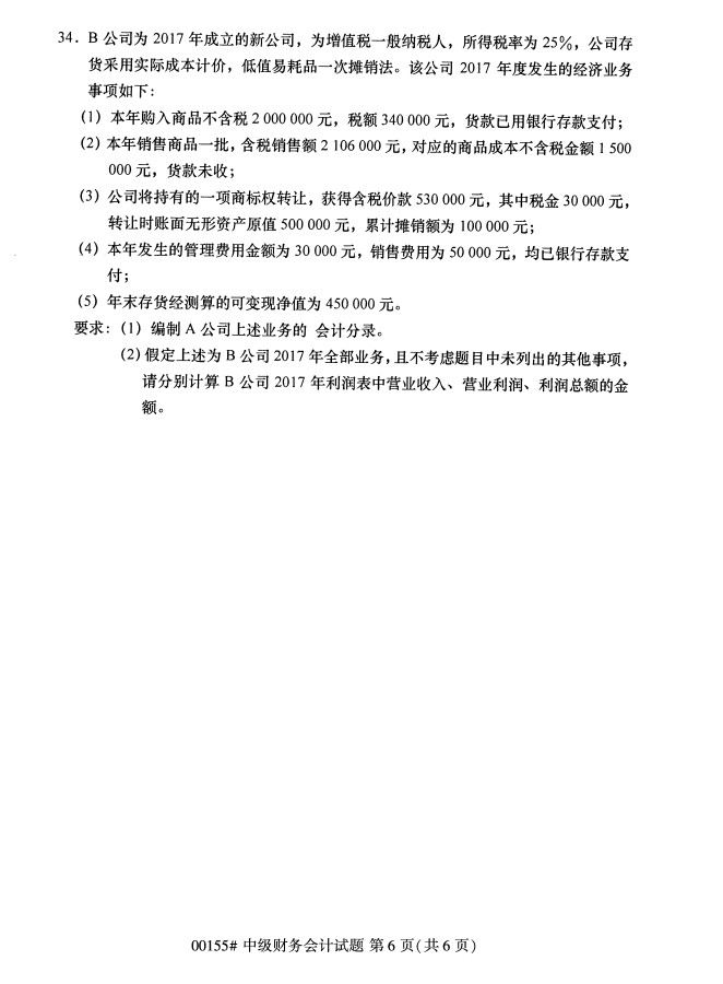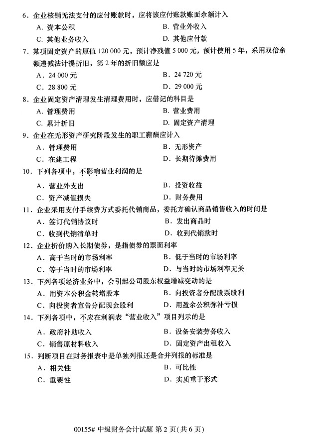 所在位置:广东省自考网 > 试题题库 > 自考试卷 > 全国2019年10月自考00155中级财务会计试题