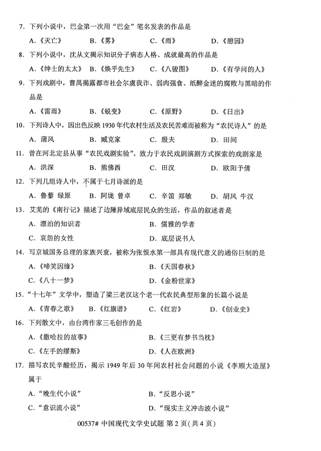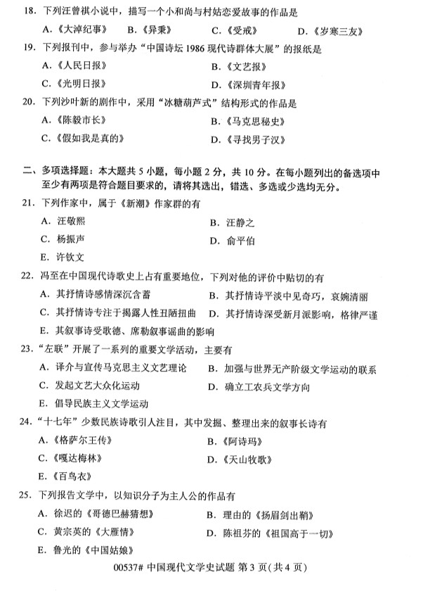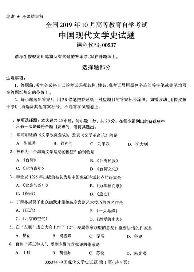 所在位置:广东省自考网 > 试题题库 > 自考试卷 > 全国2019年10月自考00537中国现代文学史试题