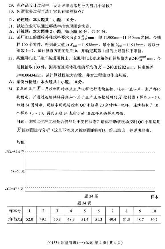 所在位置:广东省自考网 > 试题题库 > 自考试卷 > 全国2019年10月自考00153质量管理(一)试题