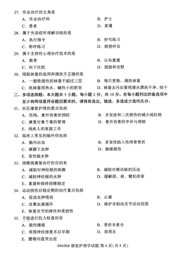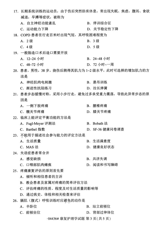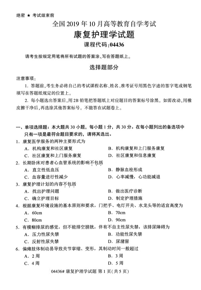 所在位置:广东省自考网 > 试题题库 > 自考试卷 > 全国2019年10月自考04436康复护理学试题