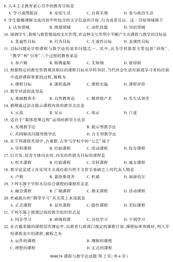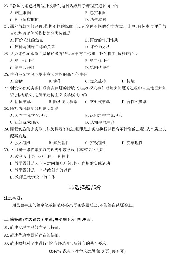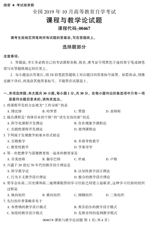 所在位置:广东省自考网 > 试题题库 > 自考试卷 > 全国2019年10月自考00467课程与教学论试题