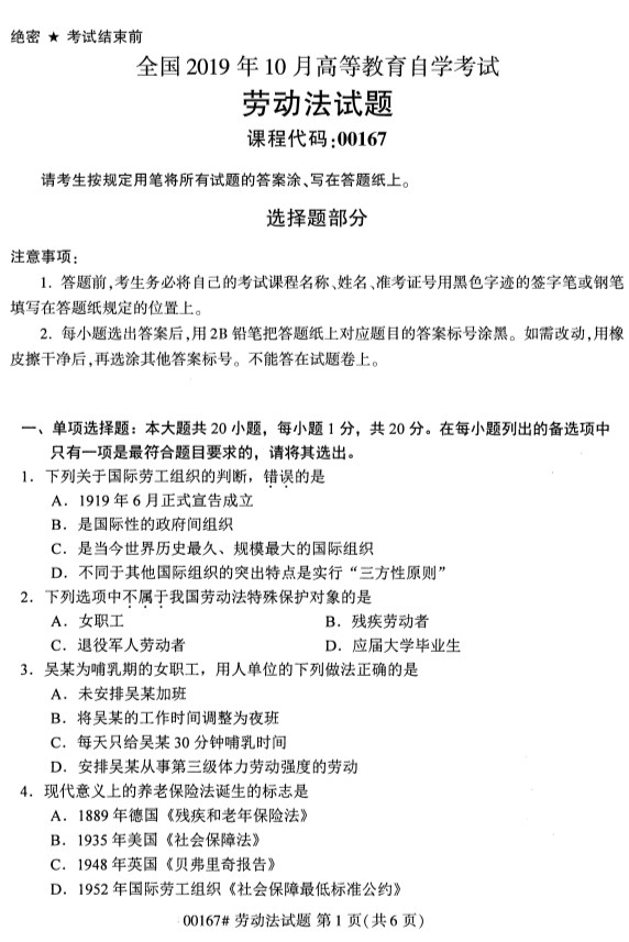 所在位置:广东省自考网 > 试题题库 > 自考试卷 > 全国2019年10月自考00167劳动法试题