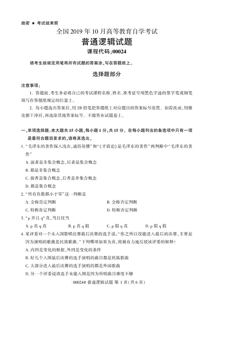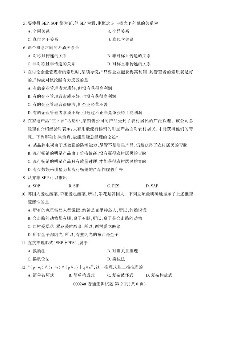 所在位置:广东省自考网 > 试题题库 > 自考试卷 > 全国2019年10月自考00024普通逻辑试题