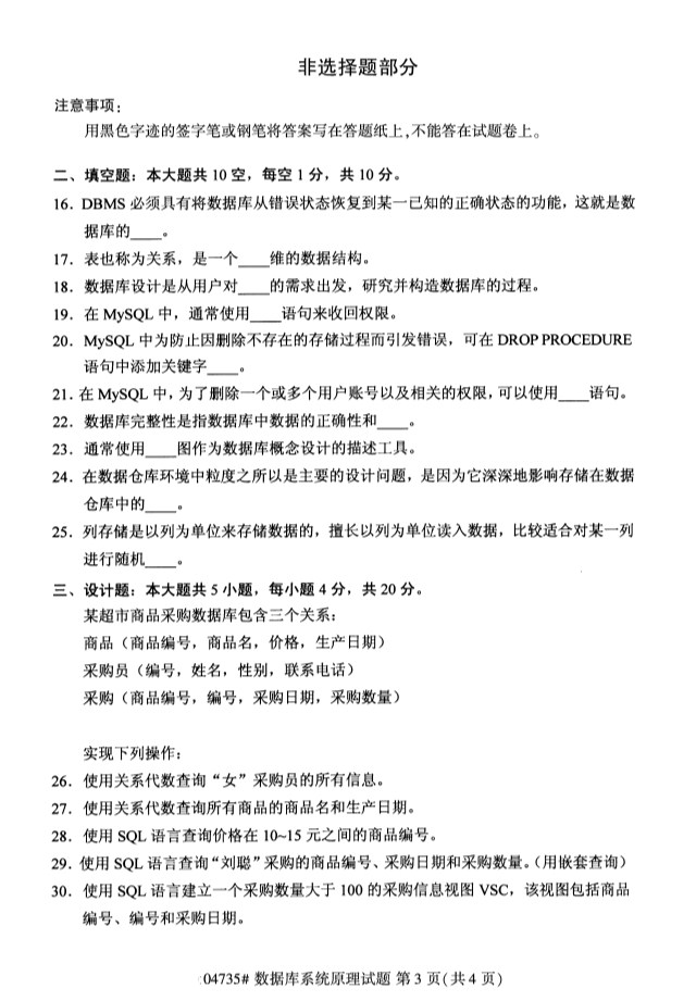 所在位置:广东省自考网 > 试题题库 > 自考试卷 > 全国2019年10月自考04735数据库系统原理试题