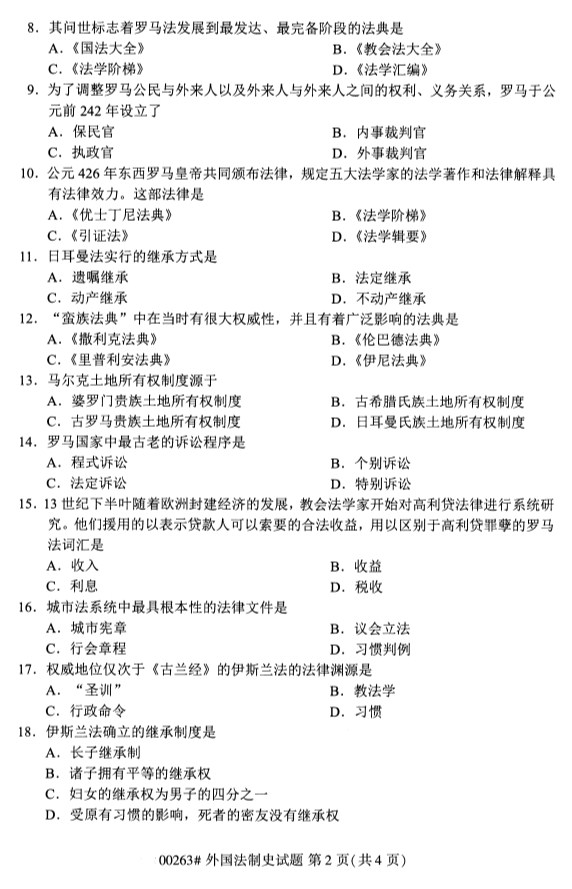 所在位置:广东省自考网 > 试题题库 > 自考试卷 > 全国2019年10月自考00263外国法制史试题