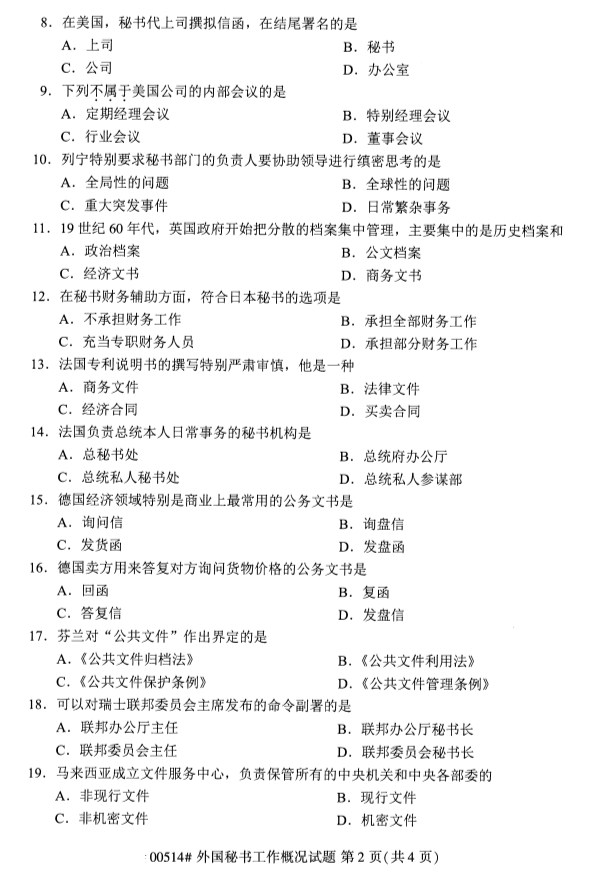 所在位置:广东省自考网 > 试题题库 > 自考试卷 > 全国2019年10月自考00514外国秘书工作概况试题