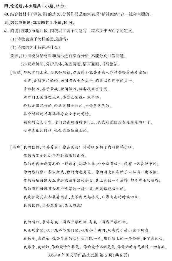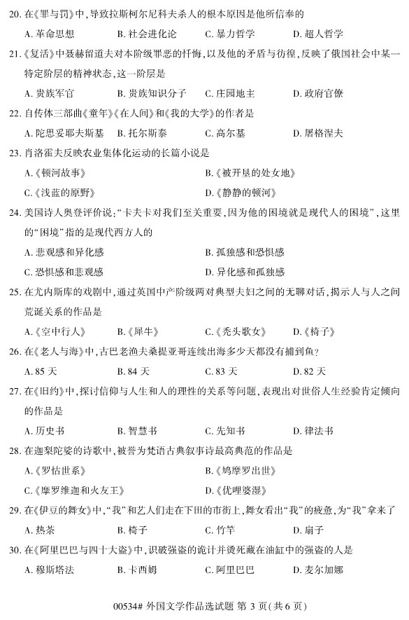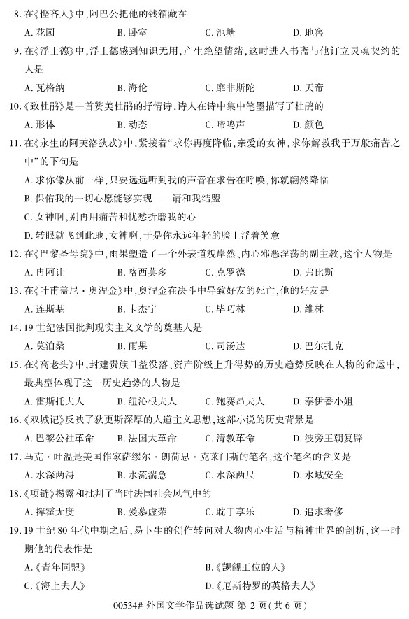 所在位置:广东省自考网 > 试题题库 > 自考试卷 > 全国2019年10月自考00534外国文学作品选试题