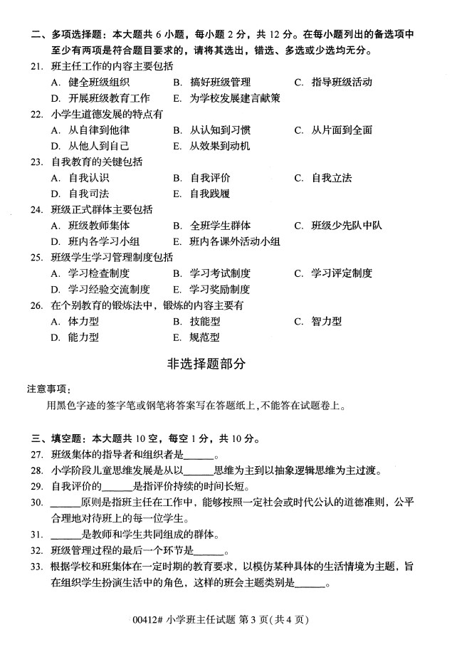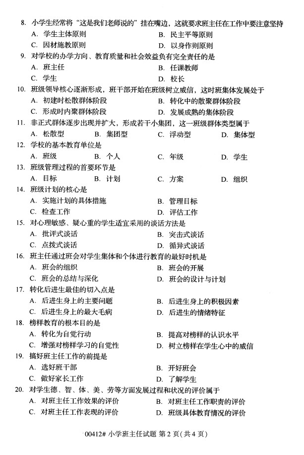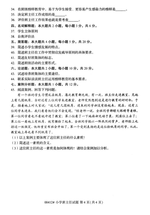所在位置:广东省自考网 > 试题题库 > 自考试卷 > 全国2019年10月自考00412小学班主任试题