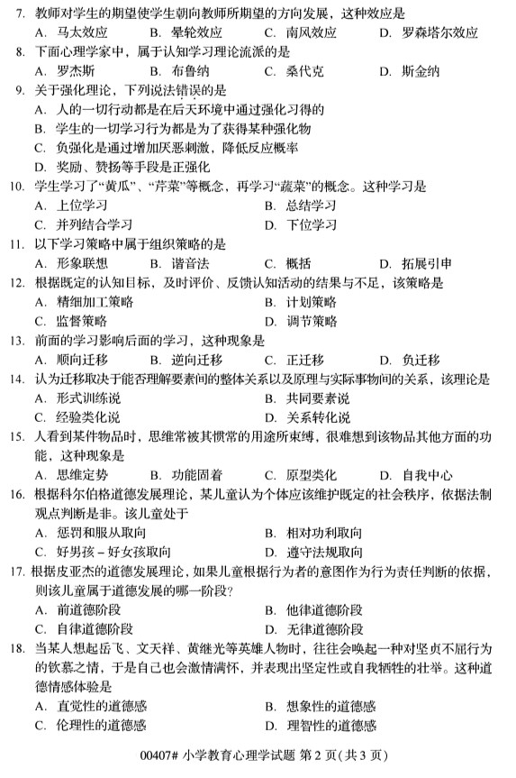 所在位置:广东省自考网 > 试题题库 > 自考试卷 > 全国2019年10月自考00407小学教育心理学试题