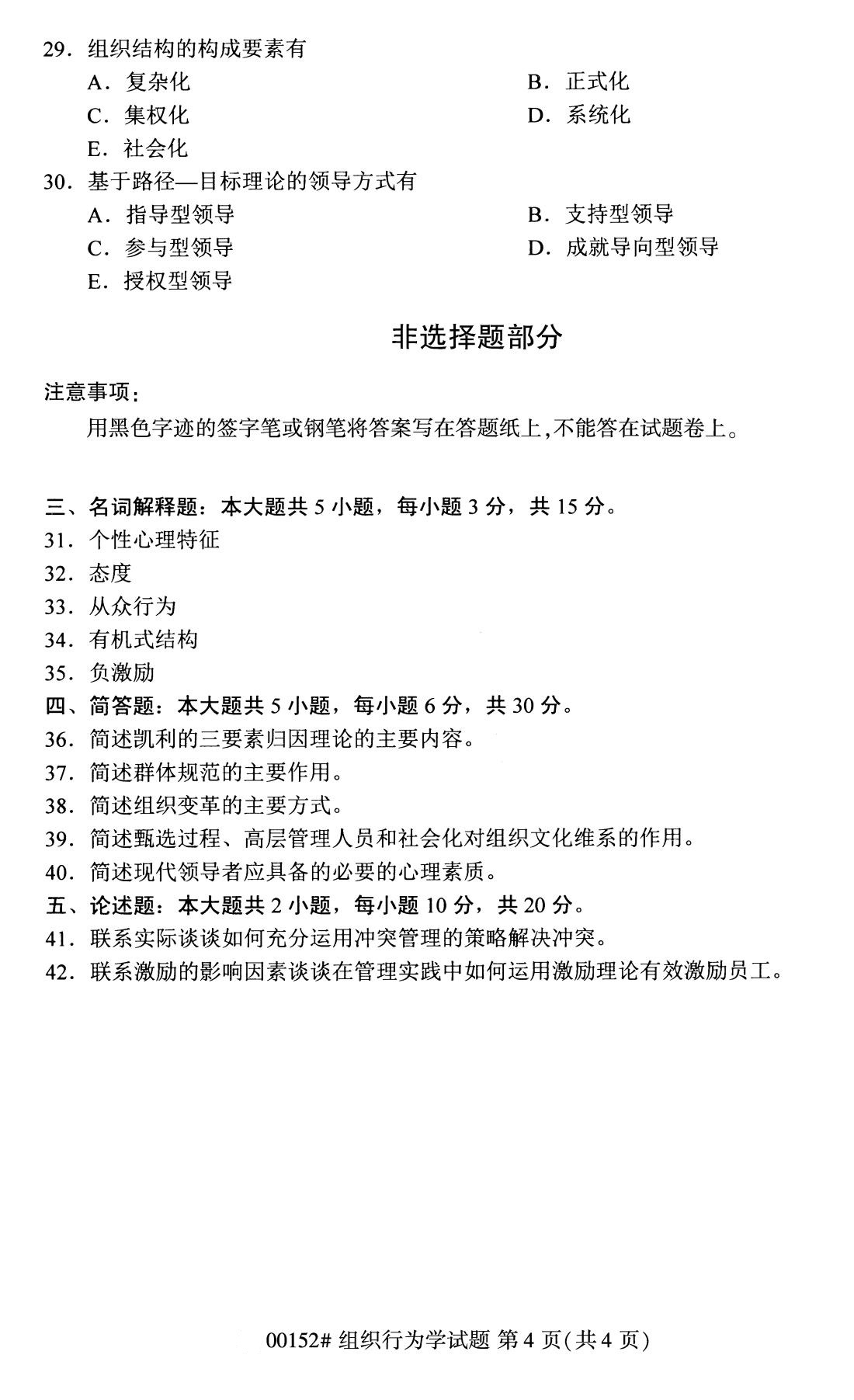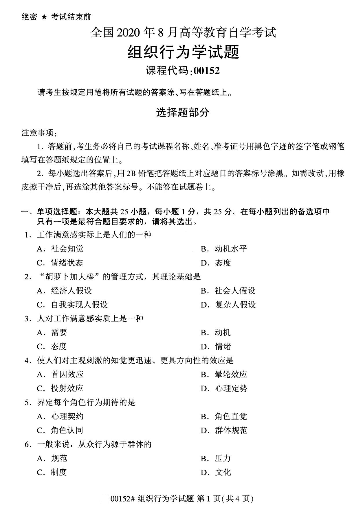 所在位置:广东省自考网 > 试题题库 > 自考试卷 > 全国2020年8月自学考试本科00152组织行为学试题