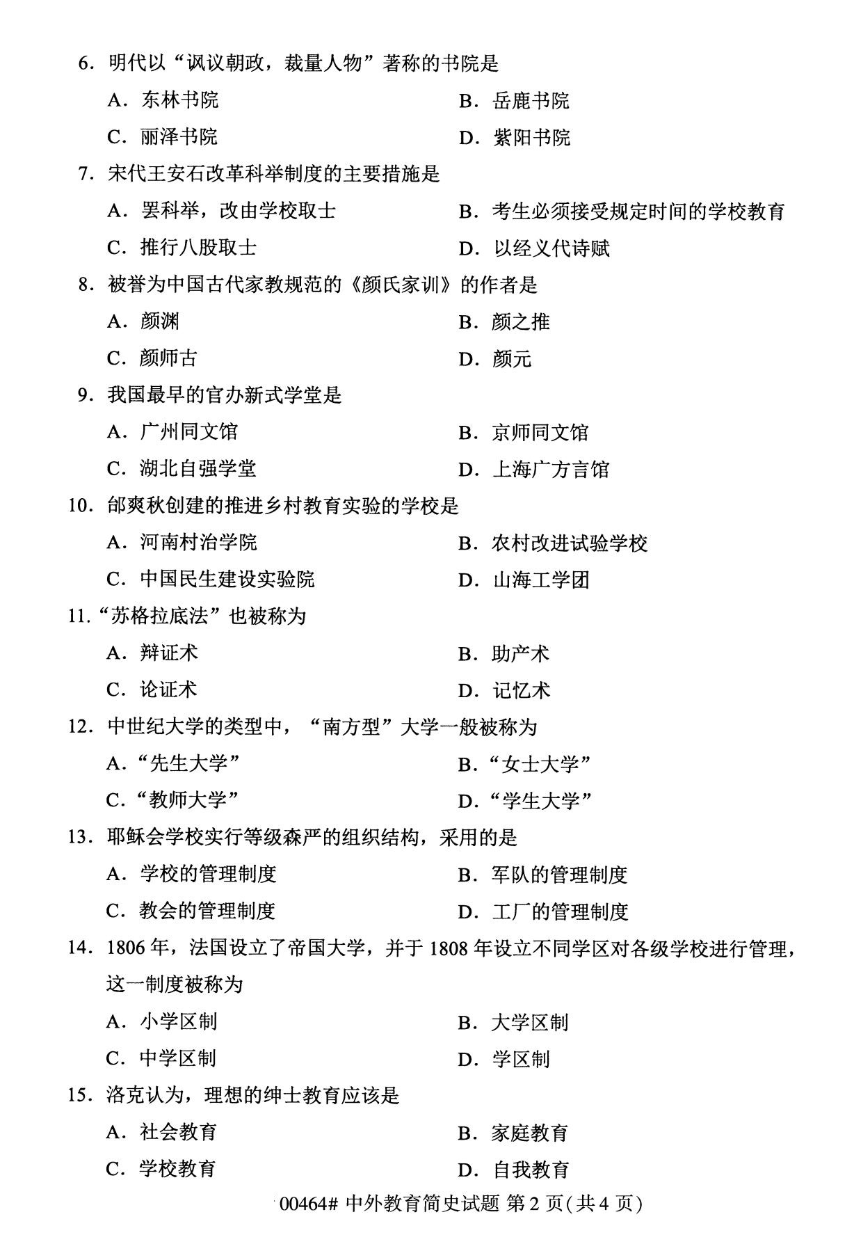 所在位置:广东省自考网 > 试题题库 > 自考试卷 > 全国2020年8月自学考试本科00464中外教育简史试题