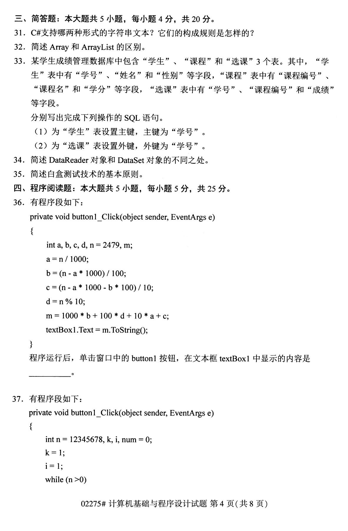 所在位置:广东省自考网 > 试题题库 > 自考试卷 > 全国2020年8月自学考试本科计算机基础与程序设计