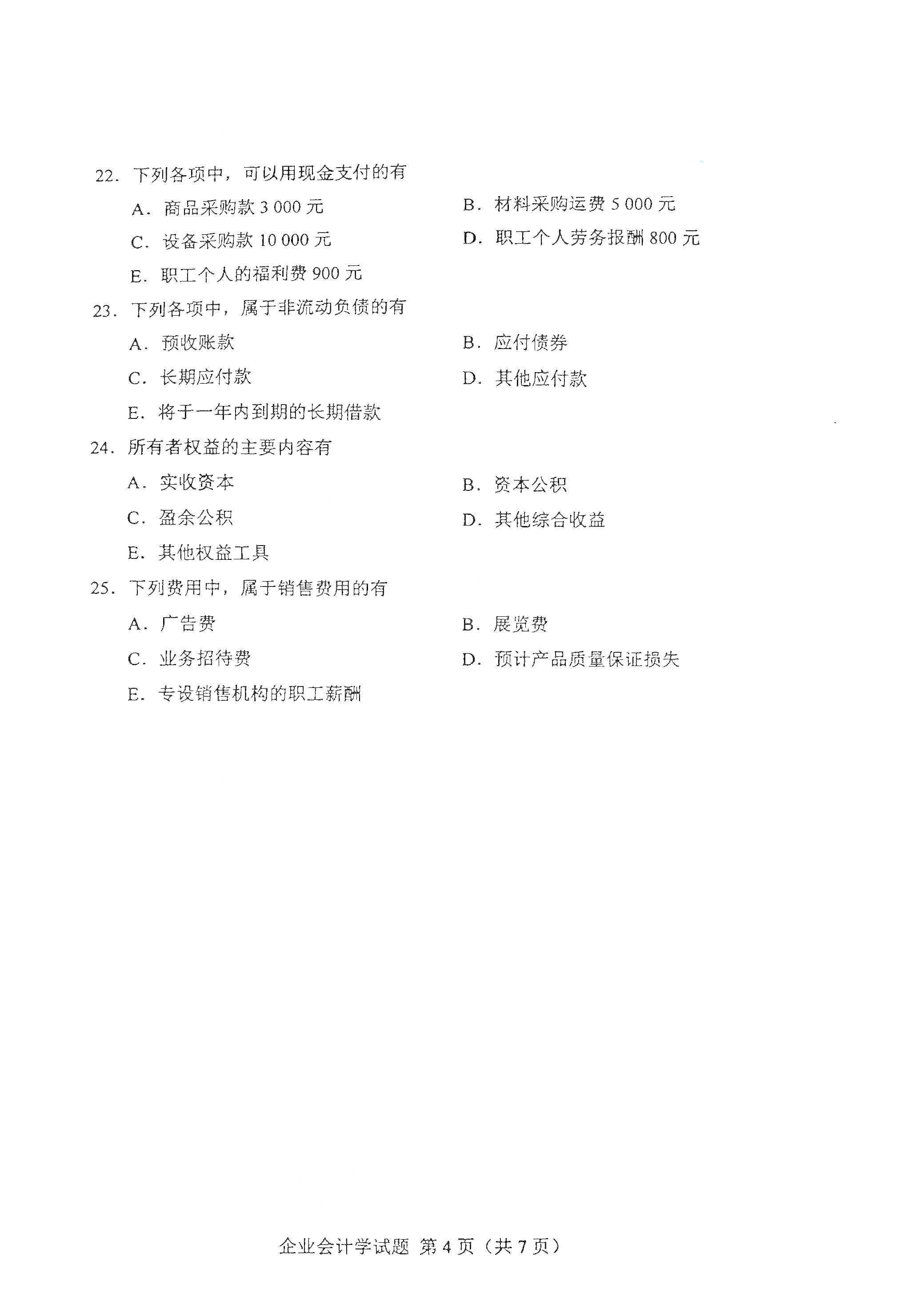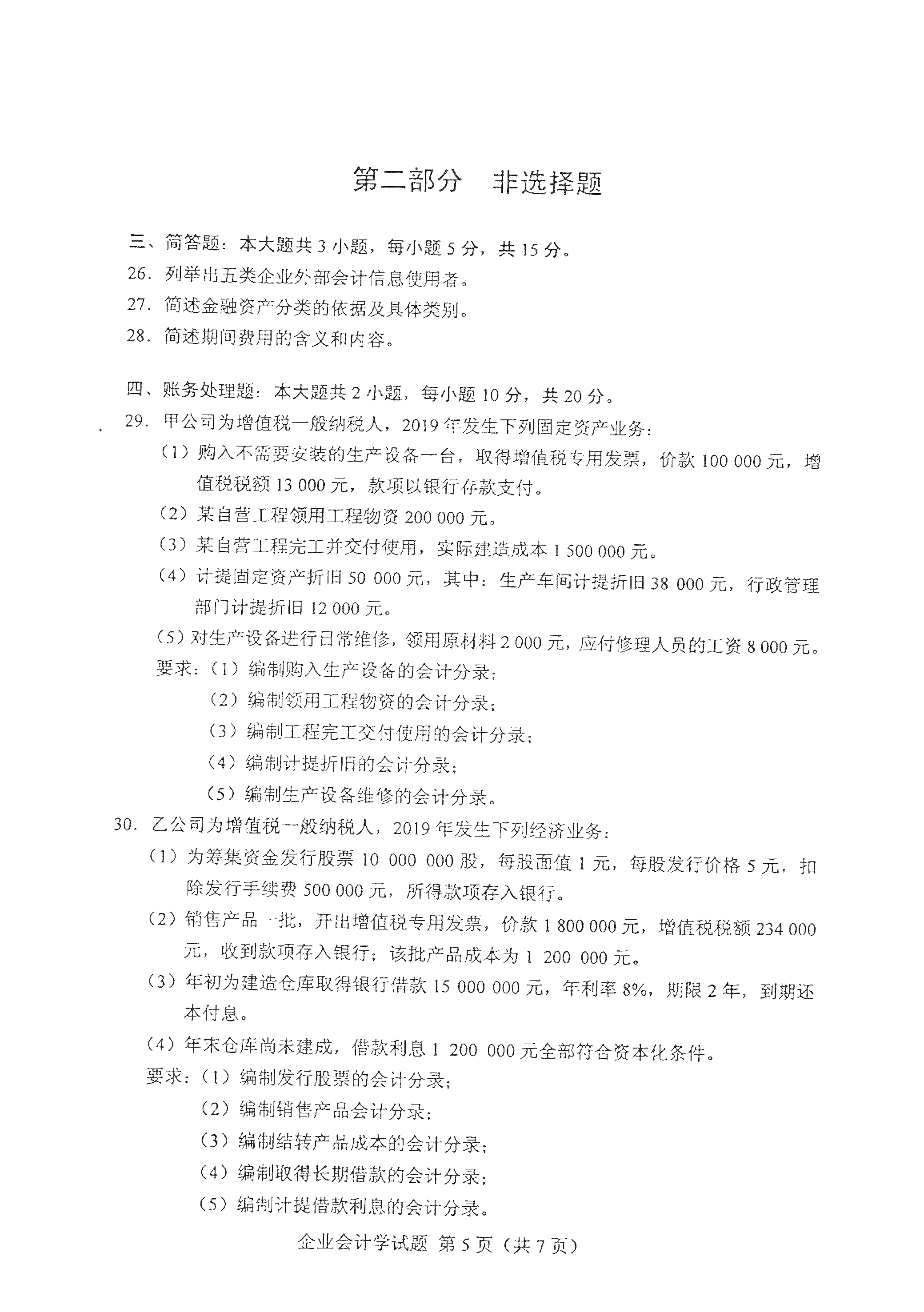 以下是2021年4月自考00055企业会计学真题试卷