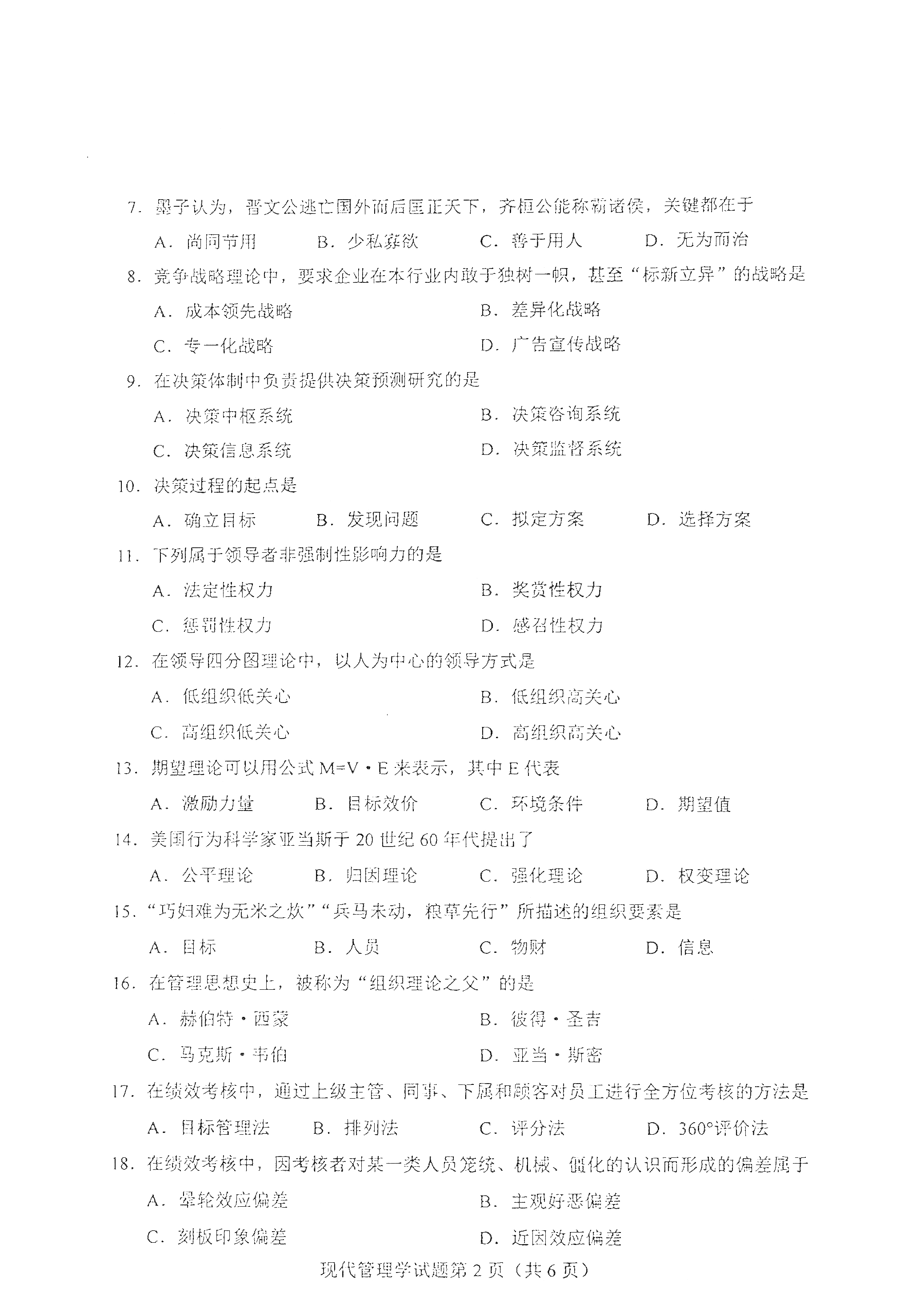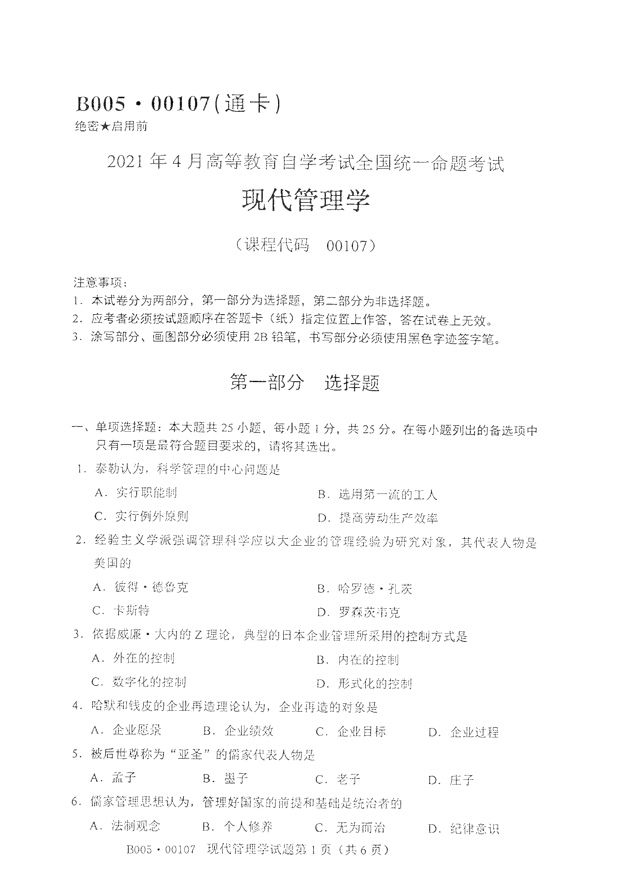 以下是2021年4月自考00107现代管理学真题试卷内容,如有疑问可咨询【关注“广东省自考服务中心”微信公众号