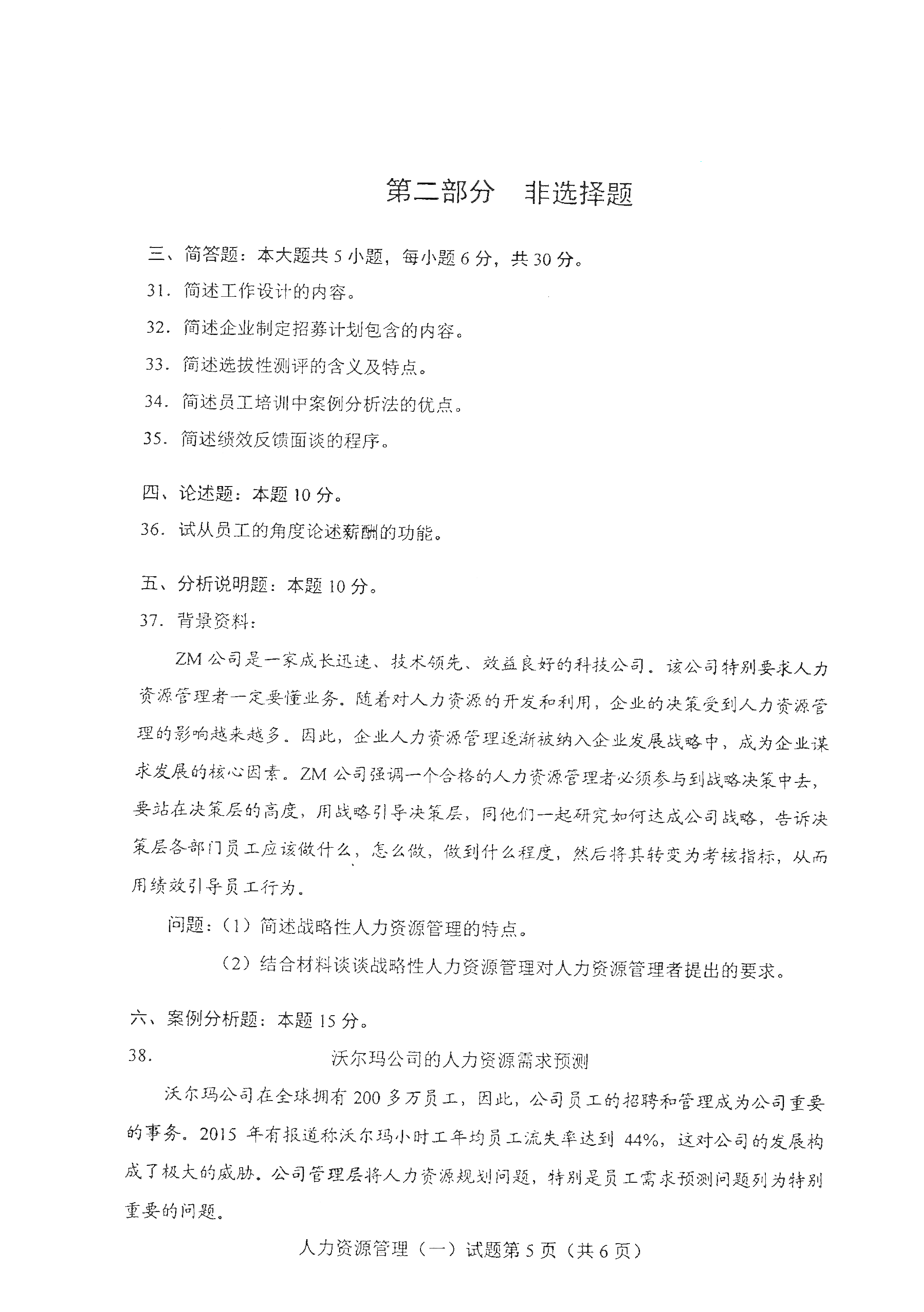 以下是2021年4月自考00147人力资源管理(一) 真题试卷内容,如有疑问可咨询【关注“广东省自考服务中心”微信公众号