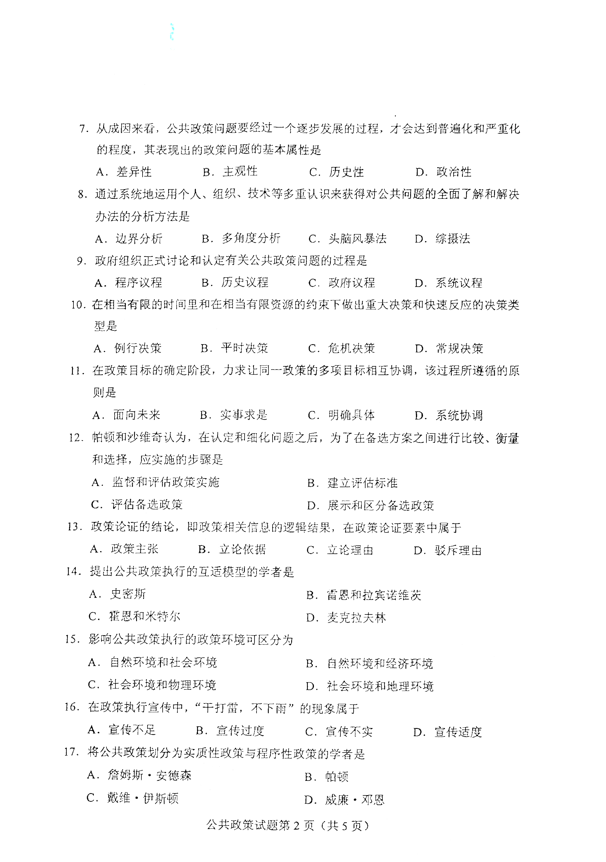 以下是2021年4月自考00318公共政策真题试卷内容,如有疑问可咨询【关注“广东省自考服务中心”微信公众号