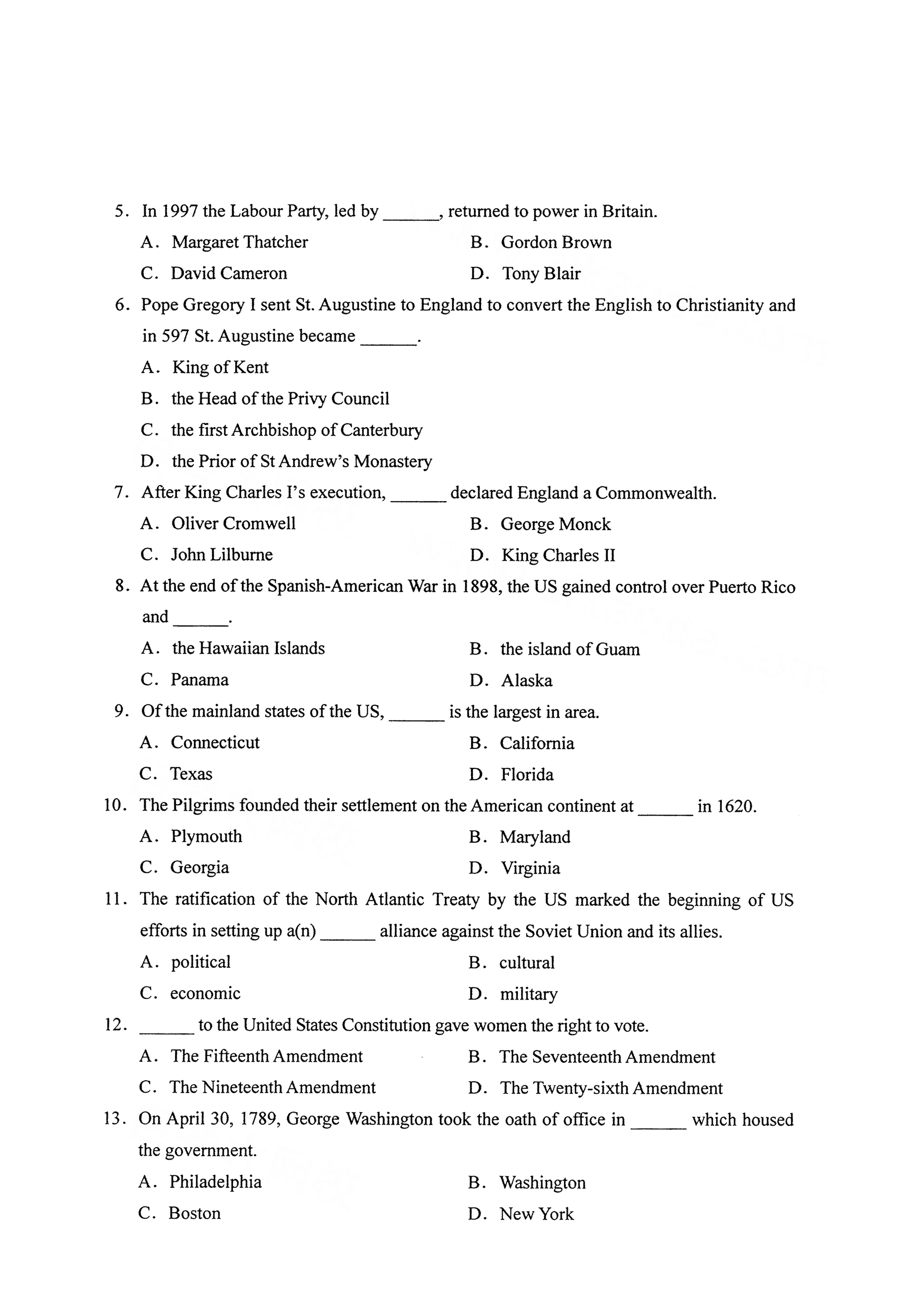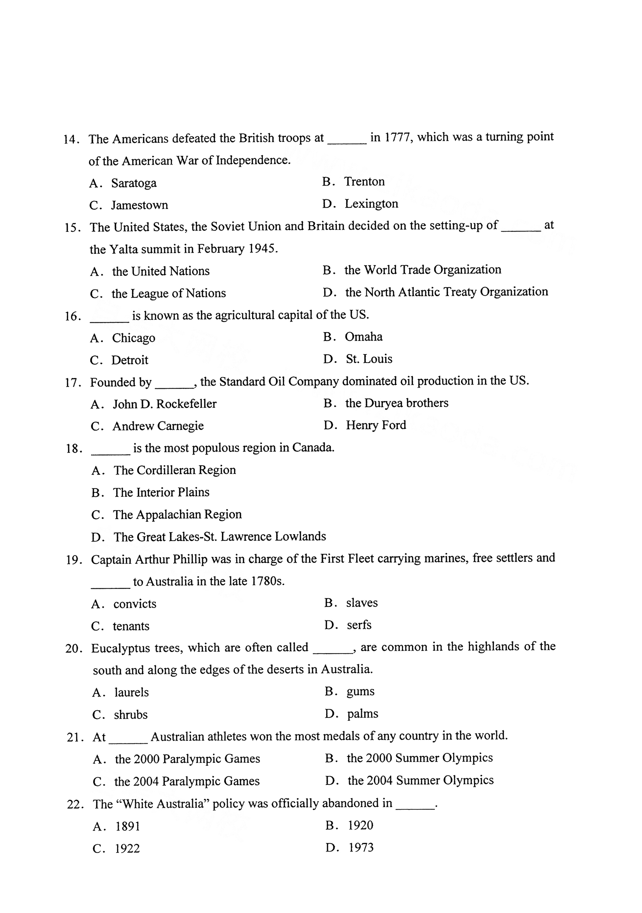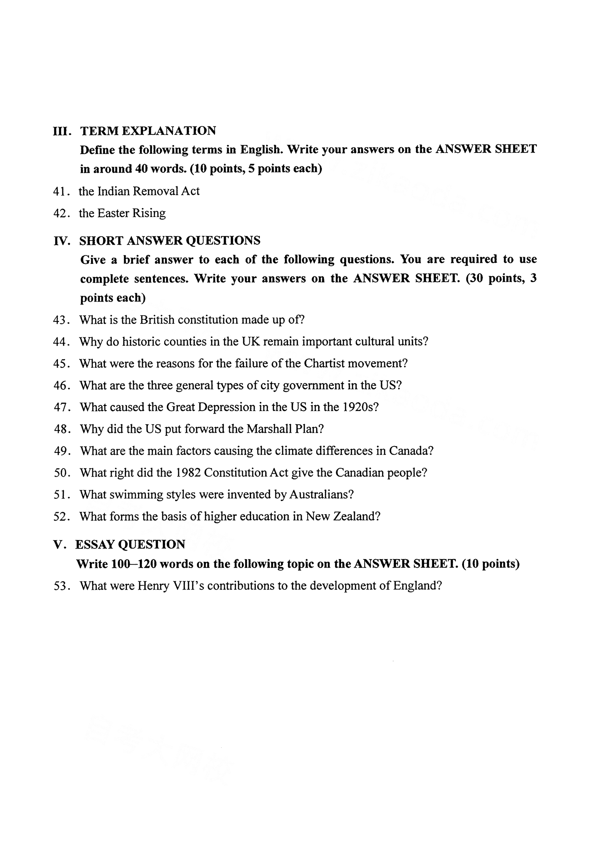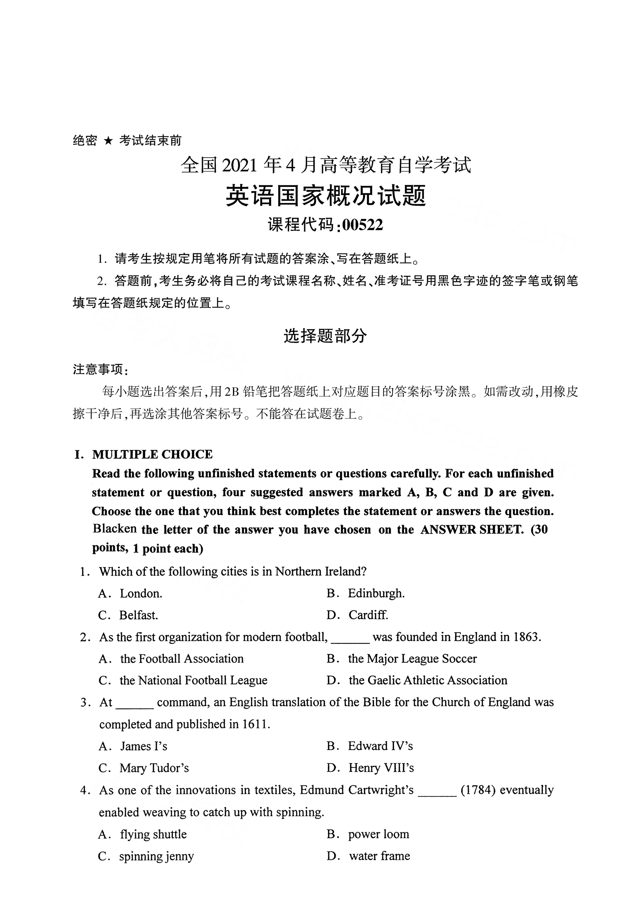 以下是2021年4月自考00522英语国家概况真题试卷内容,如有疑问可咨询【关注“广东省自考服务中心”微信公众号