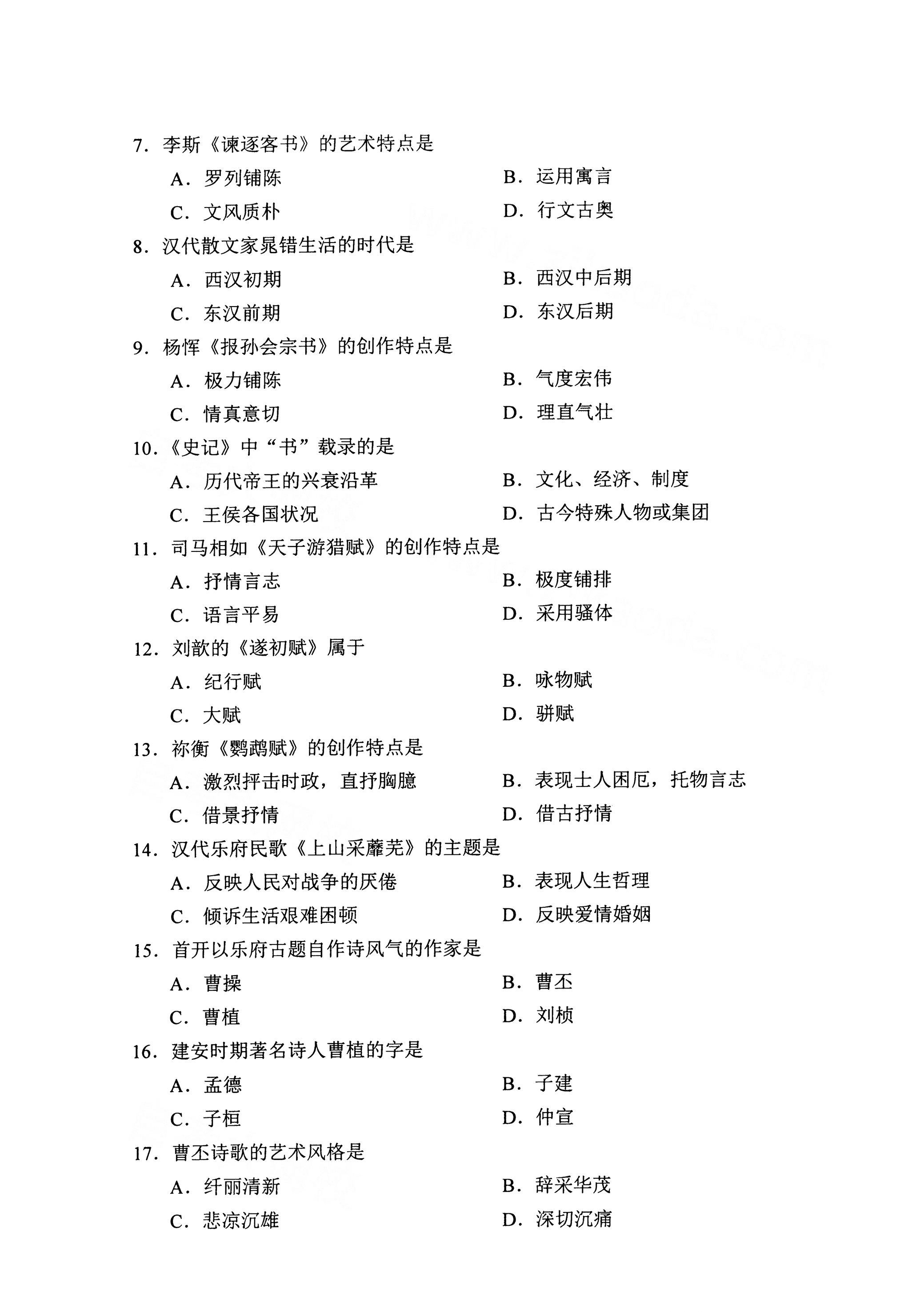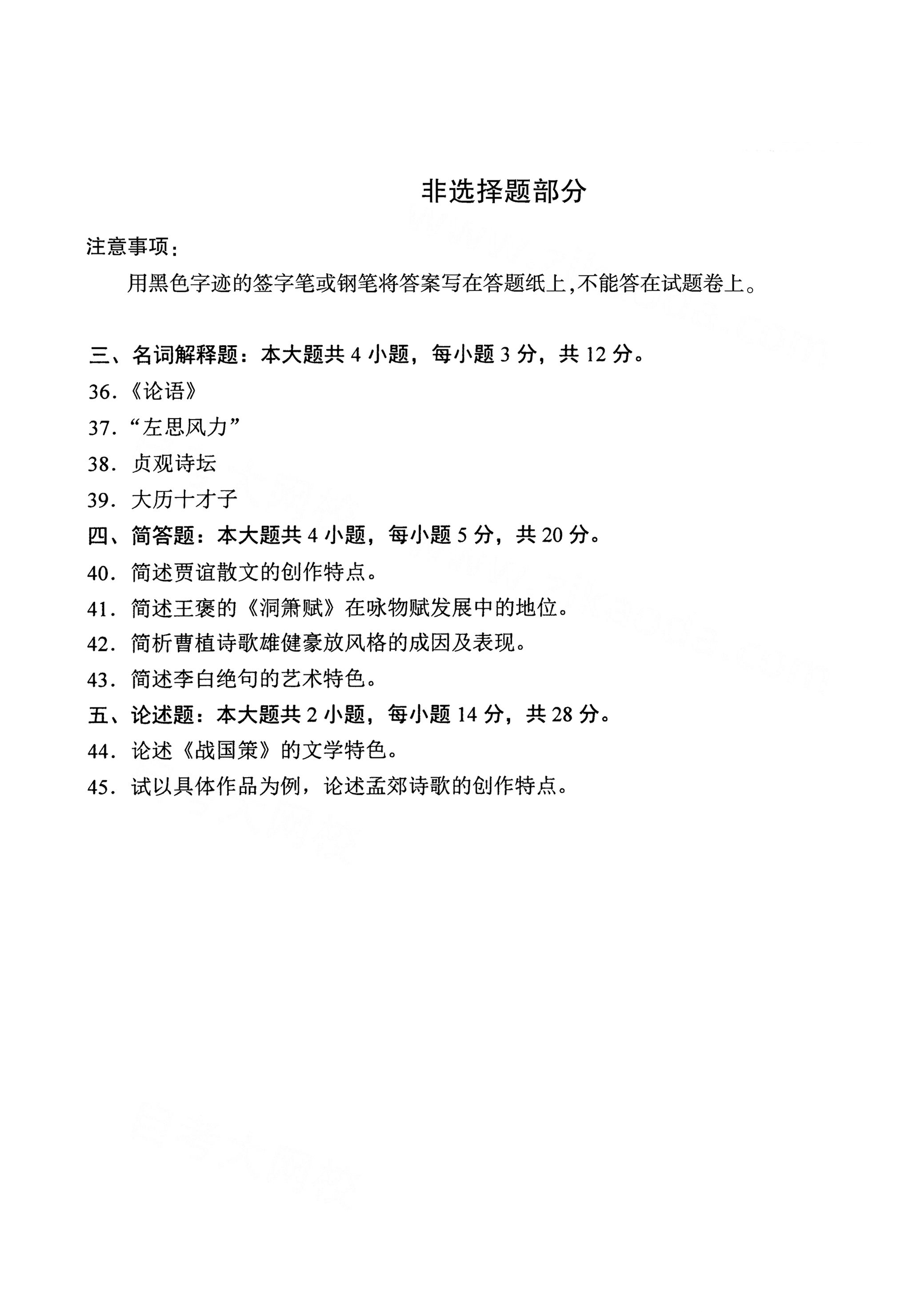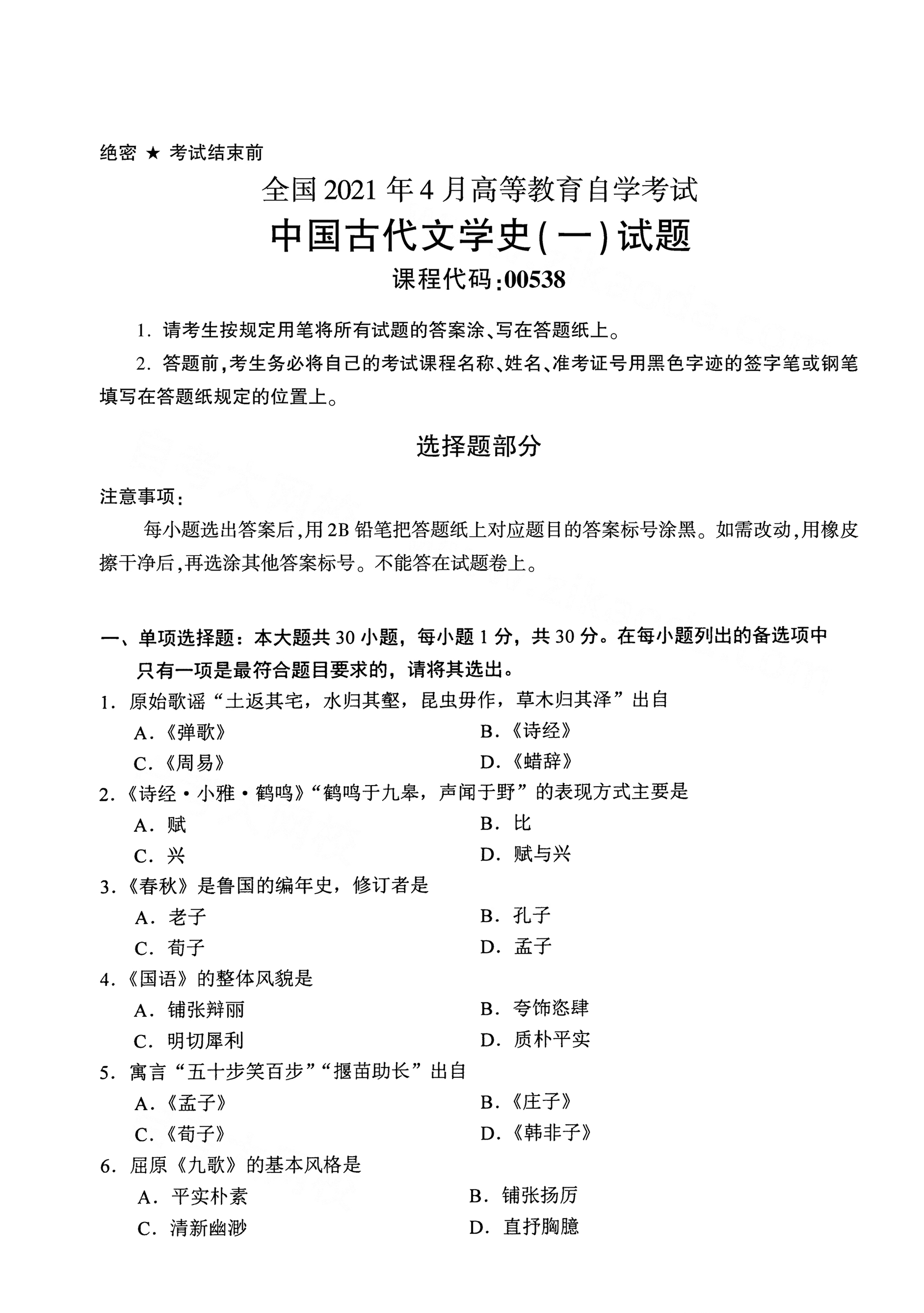 以下是2021年4月自考00538中国古代文学史(一)真题试卷内容,如有疑问可咨询【关注“广东省自考服务中心”微信公众号