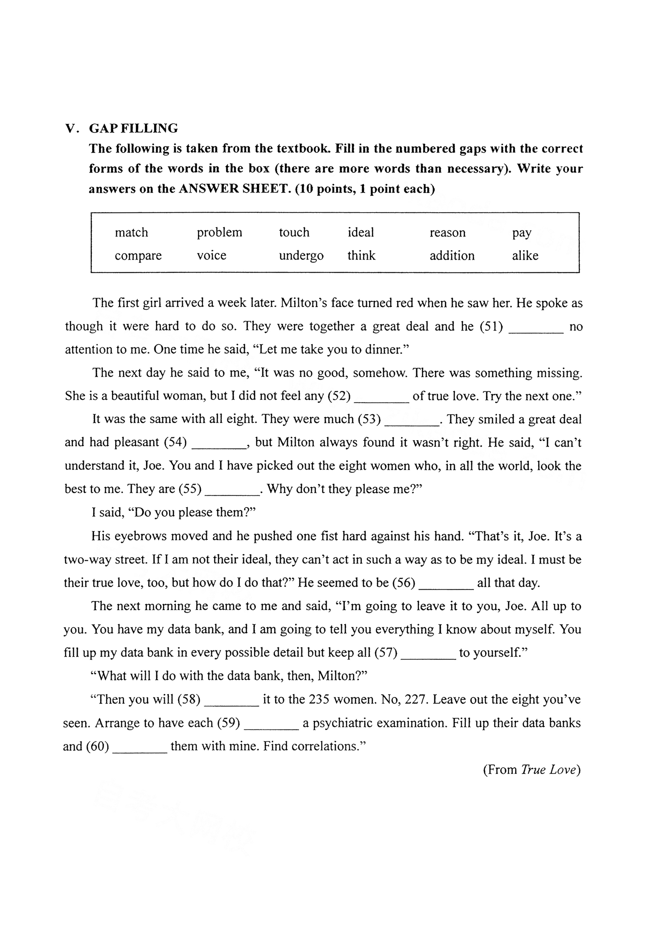 所在位置:广东省自考网 > 试题题库 > 自考试卷 > 广东自考2021年4月自考00595英语阅读(一) 真题试卷