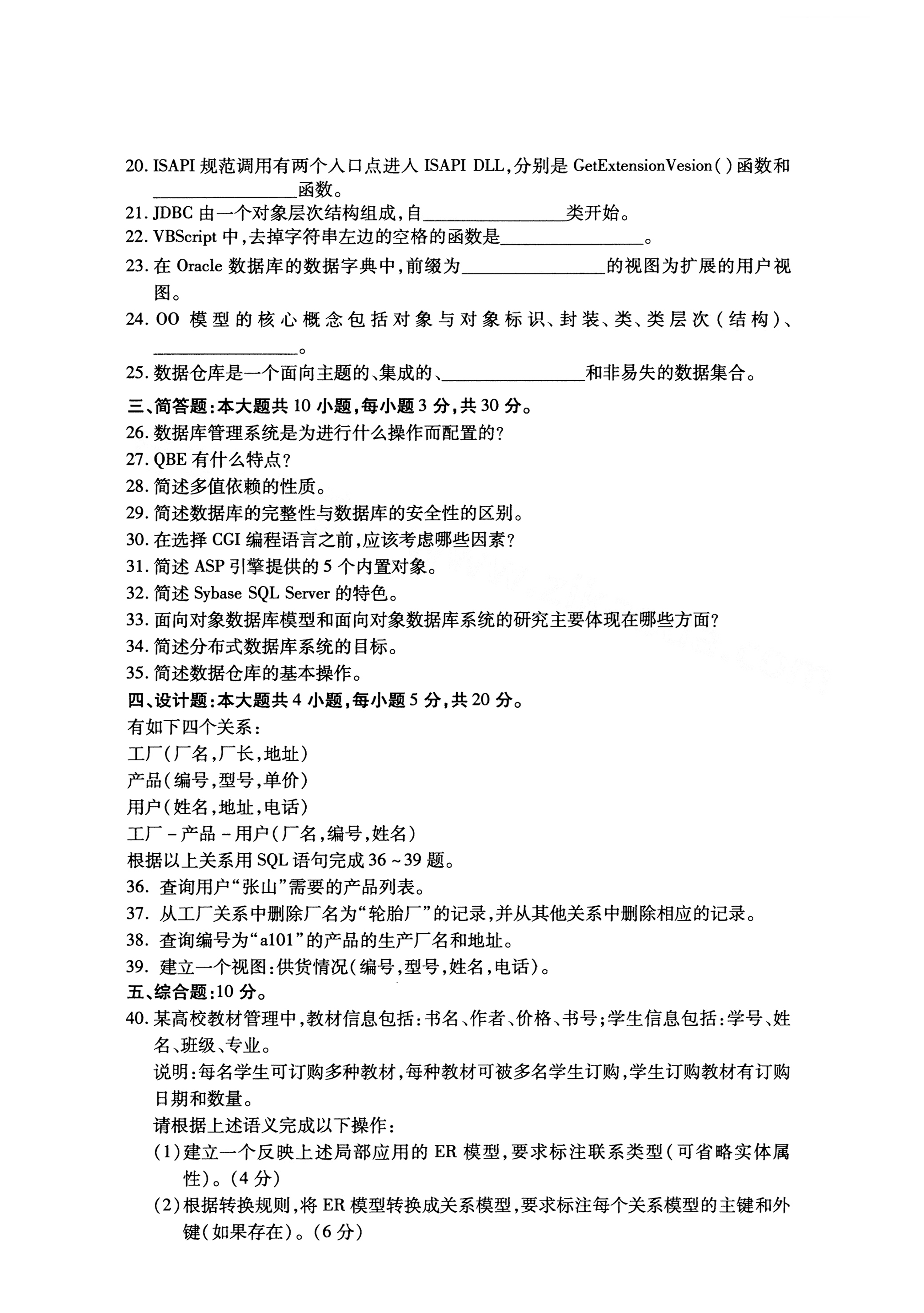 所在位置:广东省自考网 > 试题题库 > 自考试卷 > 广东自考2021年4月自考00911互联网数据库真题试卷