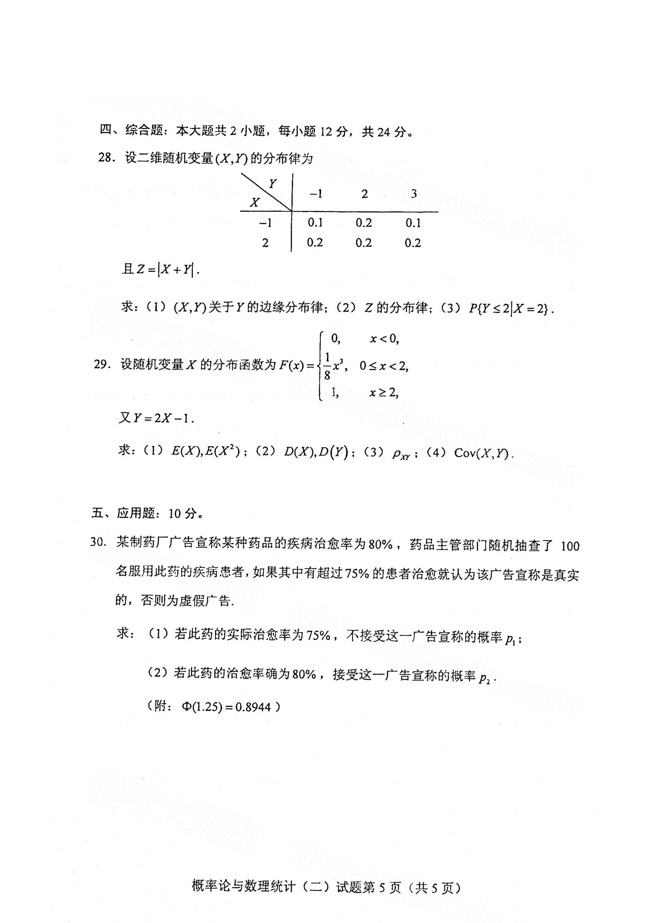 所在位置:广东省自考网 > 试题题库 > 自考试卷 > 广东自考2021年4月自考02197概率论与数理统计(二)真题试卷