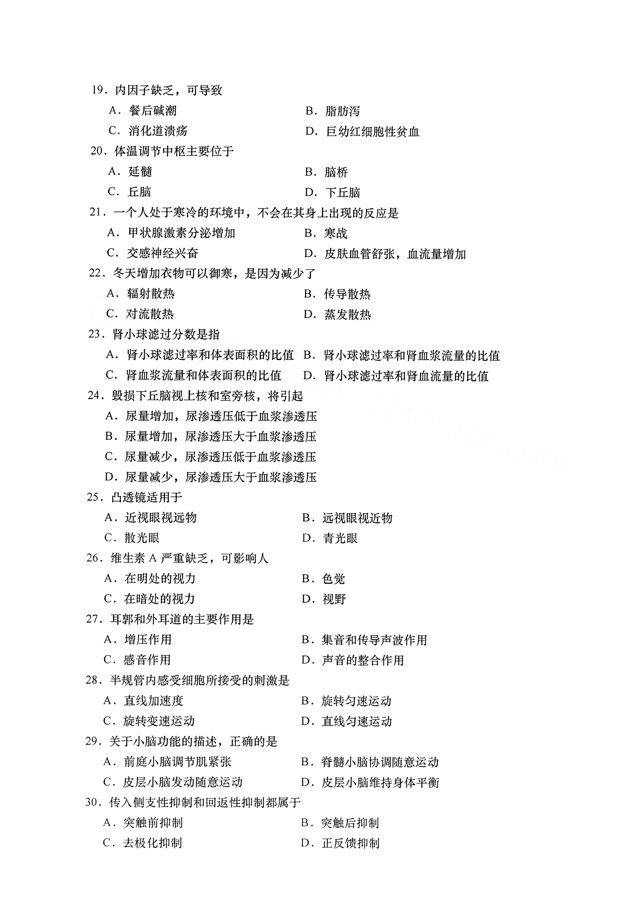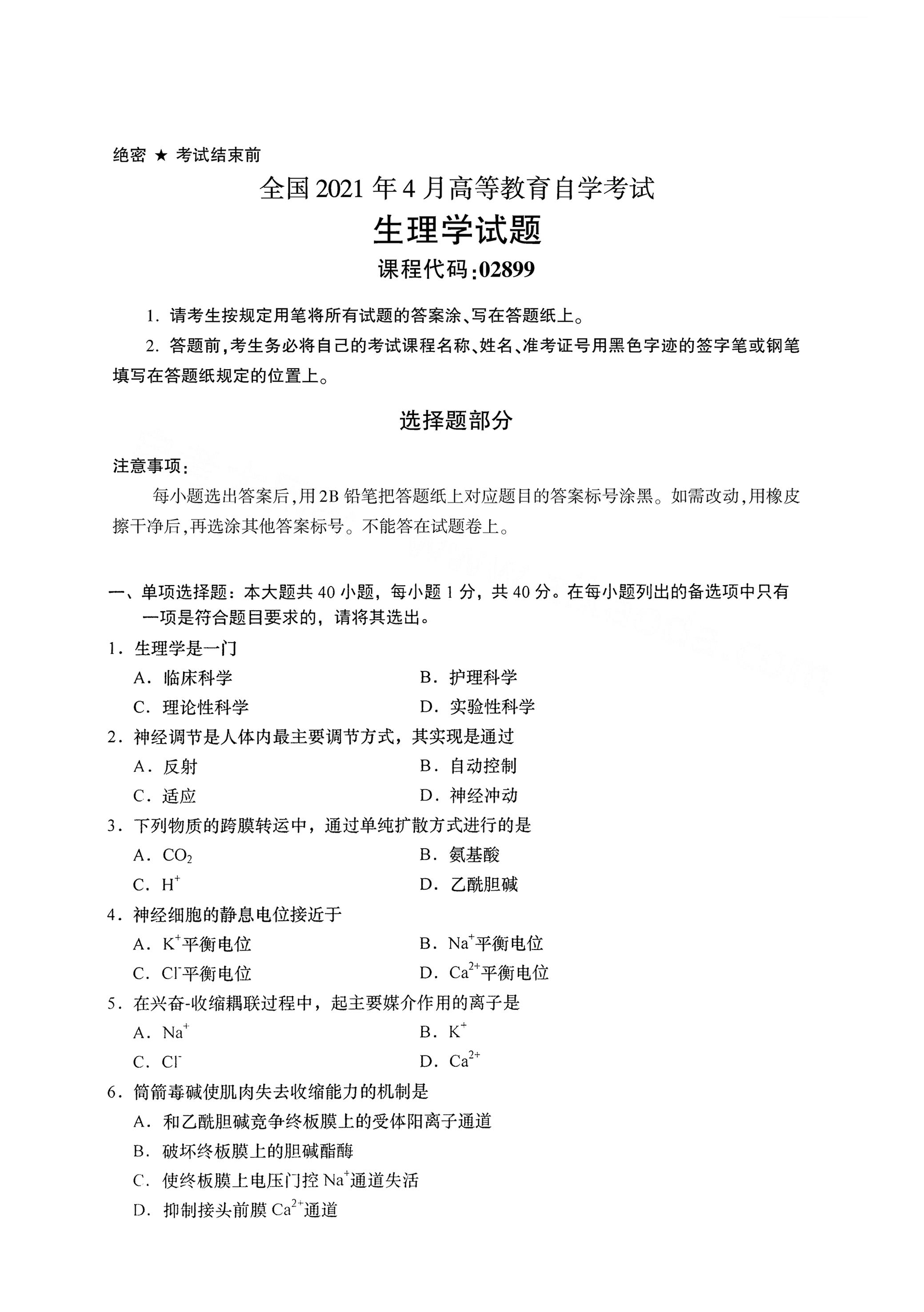 以下是2021年4月自考02899生理学真题试卷内容,如有疑问可咨询【关注“广东省自考服务中心”微信公众号